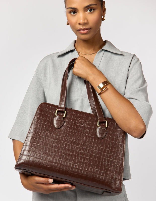 Blair Bag Chocolate Croco Print Leather