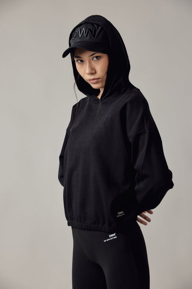 Naisten huppari, joka on valmistettu interlock-neuloksesta korkealaatuisesta luomupuuvillasta.