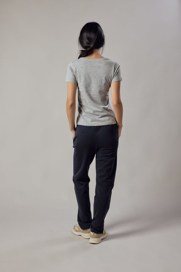 Suorat joggerit sivutaskuilla ja Ribbi vyötäröllä kiristysnauhoilla. Sertifioitu ja valmistettu korkealaatuisesta luomupuuvillasta.