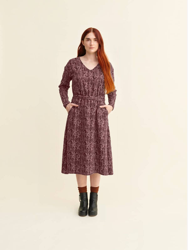Simuna hurmaa sinut elegantilla vaaleanpunaisella kuosillaan, joka luo upean yhdistelmän mekon tumman pohjavärin kanssa ja nostaa sen välittömästi suosikkilistasi kärkeen. Pitkät hihat pitävät sinut lämpimänä ja mukavana viileämmälläkin säällä, kun taas vyötäröä korostava vyö luo naisellisen ja imartelevan siluetin. Mekko ulottuu pohkeeseen asti, mikä tekee siitä täydellisen valinnan monenlaisiin tilaisuuksiin.
