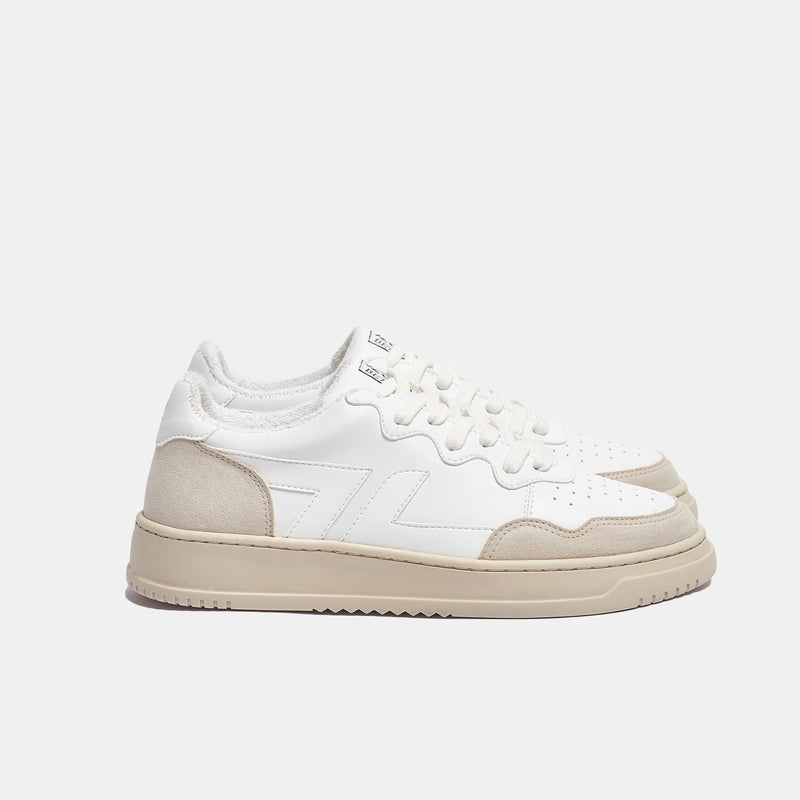 Zèta suunnittelee kierrätettyjä, kierrätettäviä ja vegaanisia lenkkareita, joilla on mahdollisimman pieni ympäristövaikutus. Bordeaux'ssa suunnitellut kengät kootaan käsin Vizelan alueella Portugalissa kunnioittaen ihmisiä.