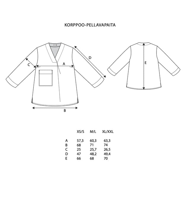 niinmun Korppoo-paita yhdistää saumattomasti kimonon eleganssin ja naisellisen viehätyksen. Saarikuvion kevyt kiilto lisää juhlavuutta puseroon. Paidassa on V-kaula-aukko, joka on korostettu etulaskoksella. Tämä yksityiskohta täydentää erinomaisesti vyötärö- ja rinta-aluetta, tarjoten tyylikkään lisän paitaan.