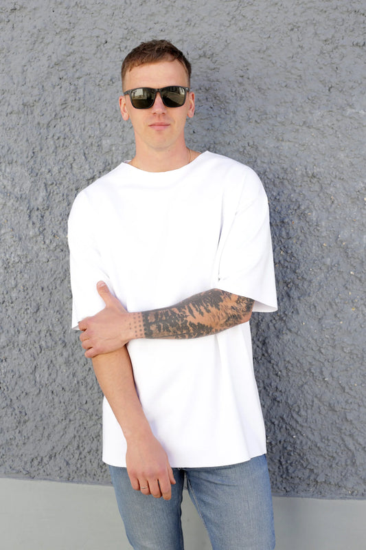 Tarkoituksella oversized siluetti, jossa on saumaton rakenne hihoissa, helmassa ja kauluksessa, tarjoaa huolitellun esteettisyyden ilman näkyviä ompeleita. Repeytymätön kangas antaa sinulle vapauden säätää pituutta tarkasti mieltymyksesi mukaan, tarjoten sekä mukavuutta että räätälöintiä yhdessä vaatekappaleessa.