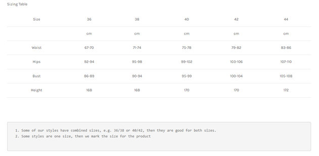 40/42 - pituus 56 cm, rintakehä 54 cm, vyötärönauha alareunassa 50 cm, hihan kokonaispituus kauluksesta helmaan 73 cm.