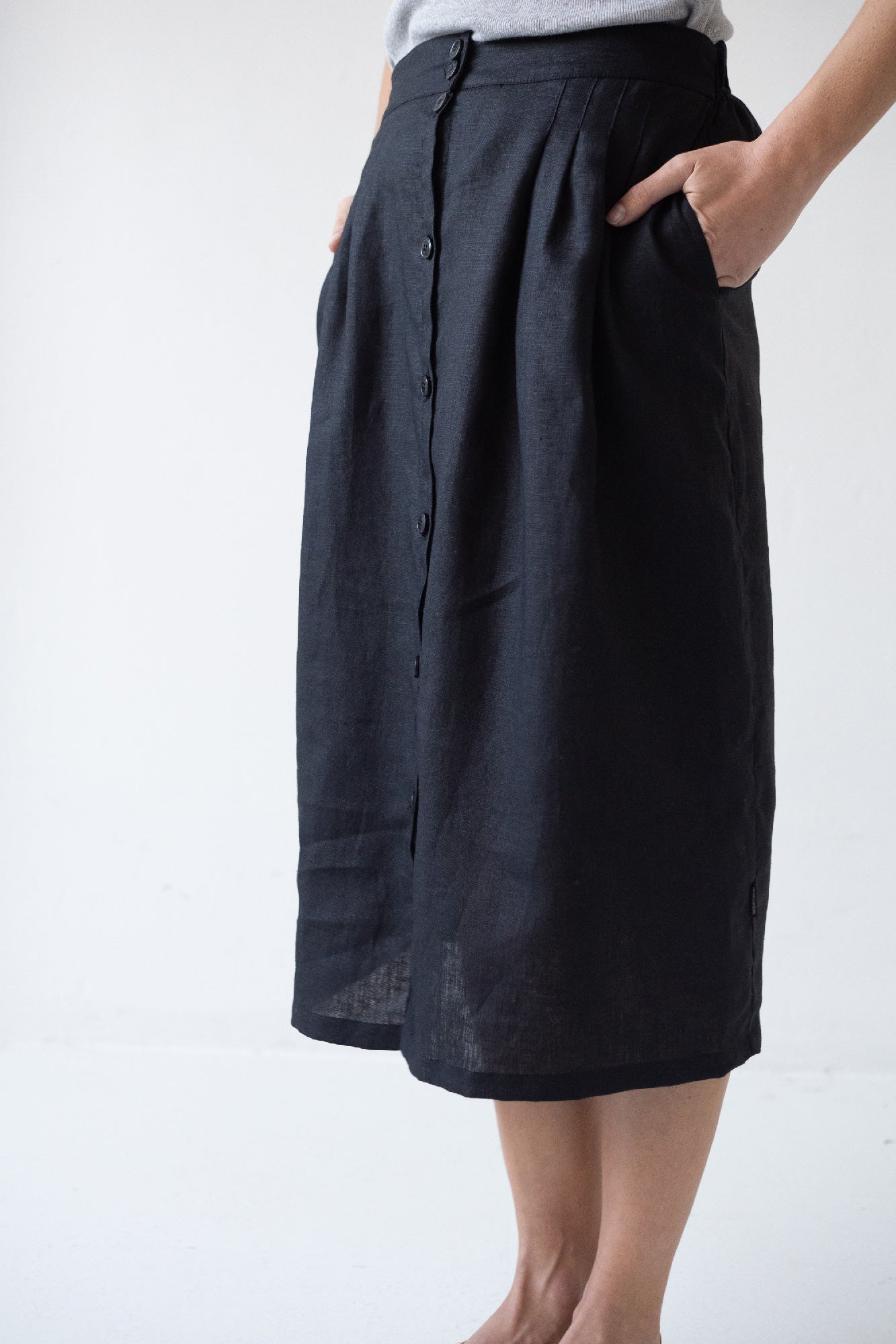 Bernadette-pellavahame Beige on monipuolinen lisä mihin tahansa vaatekaappiin. Laadukkaasta pellavasta valmistettu hame tarjoaa kevyen ja hengittävän vaihtoehdon lämpimään säähän. Joustava nauha mahdollistaa mukavan ja säädettävän istuvuuden, kun taas midi-pituus tarjoaa klassisen ja tyylikkään tyylin. Tämä hame sopii täydellisesti kaikkiin tilaisuuksiin, ja se on kaikkien muotitietoisten yksilöiden ehdoton hankinta.