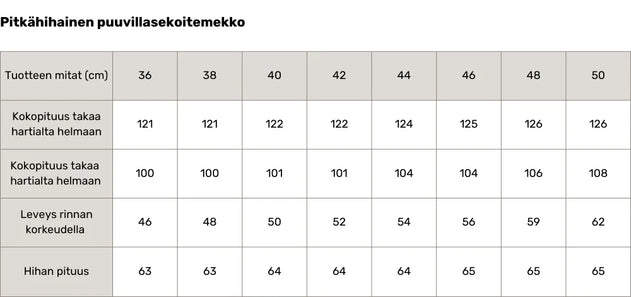 Nettiostoksilla kannattaa turvautua mittanauhan tai verkkokaupan kokotyökalun apuun. Tarkista vaatemerkin kehon mittojen mukainen kokotaulukko ja vaatteen mitat, jos ne ovat saatavilla. Ole tarvittaessa yhteydessä asiakaspalveluumme tarkempien mittojen saamiseksi.