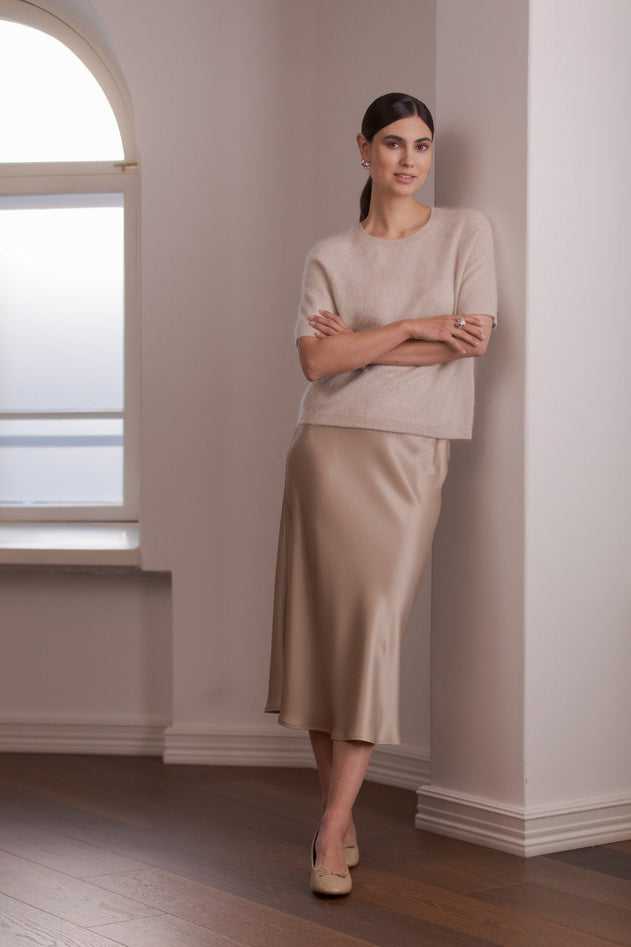 Ariel Alpaca Blend Short Sleeve Sweater Greige