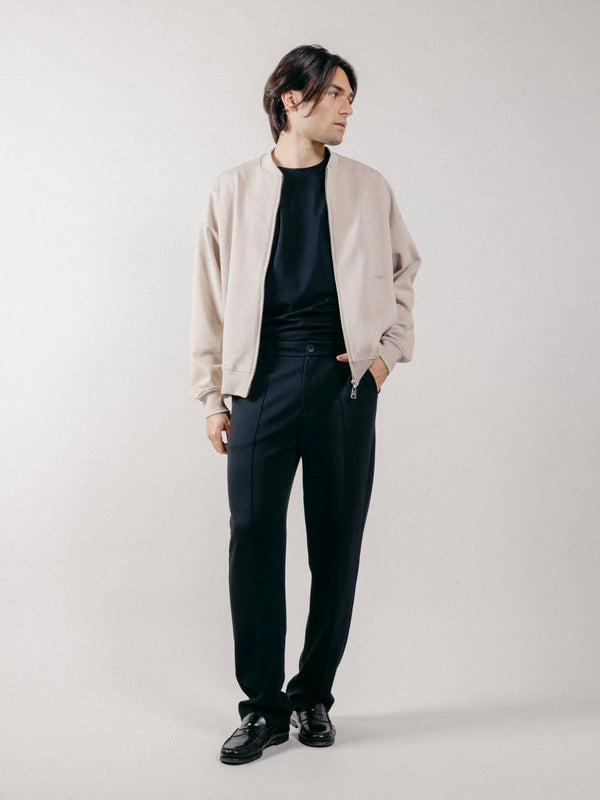 Vaivatta monikäyttöiset chino-housut, jotka on valmistettu pehmeästä interlock-kankaasta, jossa on sertifioitua luomupuuvillaa, kierrätettyä polyesteriä ja elastaania. Kiristysnauha vyötäröllä ja edessä oleva ommeltu rypytys antavat hienostuneen siluetin, kun taas hienovarainen sävy sävyyn kirjailtu logo lisää hillittyä hienostuneisuutta. GOTS-, GRS- ja OEKO-TEX-sertifioitu, mikä takaa kestävän mielenrauhan. Saatavana beige, musta ja luonnonvalkoinen.