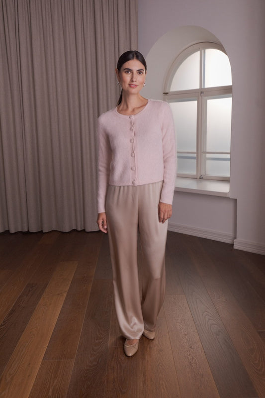 Katie Long-Sleeve Cashmere Cardigan Pale Pink