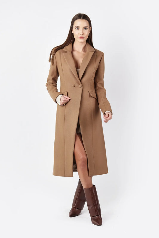 Classic 100% wool coat. Perfectly tailored, thanks to its perfectly designed form. This coat can be worn on two manners: choose your size if you want to wear it femininely, and for a sportier style we recommend a size larger.