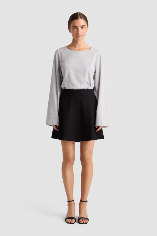 Elvie-hame Musta tarjoaa hienostuneen näkemyksen naisellisesta minihameesta leveällä, runsaslinjaisella leikkauksellaan, joka laskeutuu elegantisti luoden imartelevan siluetin. Suunniteltu käytännöllisillä sivusaumataskuilla, se yhdistää saumattomasti tyylin ja toiminnallisuuden. Tämän hameen leikkisä muoto korostaa liikettä samalla säilyttäen huolitellun, asiantuntevan viimeistelyn, joka sopii monipuolisiin tilaisuuksiin.