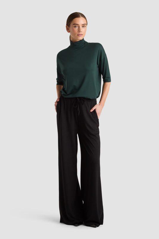 Harmaat housut mustana tarjoavat rennon istuvuuden leveillä lahkeilla, jotka on valmistettu pehmeästä, kevyestä silkkisestä kankaasta. Suunniteltu mukavuutta ja helppoutta varten, niissä on säädettävä kiristysnauha vyötäröllä ja käytännölliset sivusaumataskut, jotka yhdistävät tyylin ja toiminnallisuuden. Ihanteelliset niille, jotka etsivät vaivattomuutta ja mukavuutta vaatekaapissaan.