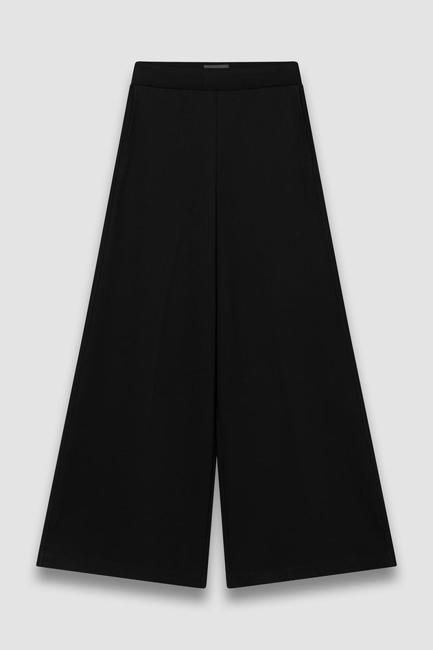 Musta Luna-housut tarjoavat hienostuneen siluetin poikkeuksellisen leveällä istuvuudellaan, luoden tasapainon naisellisen eleganssin ja voiman välille. Etupuolen prässätyillä laskoksilla ja käytännöllisillä vinotaskuilla varustetut, nämä hulmuavat housut yhdistävät eleganssin ja arjen toiminnallisuuden, tehden niistä hienostuneen valinnan itsevarmaan pukeutumiseen.