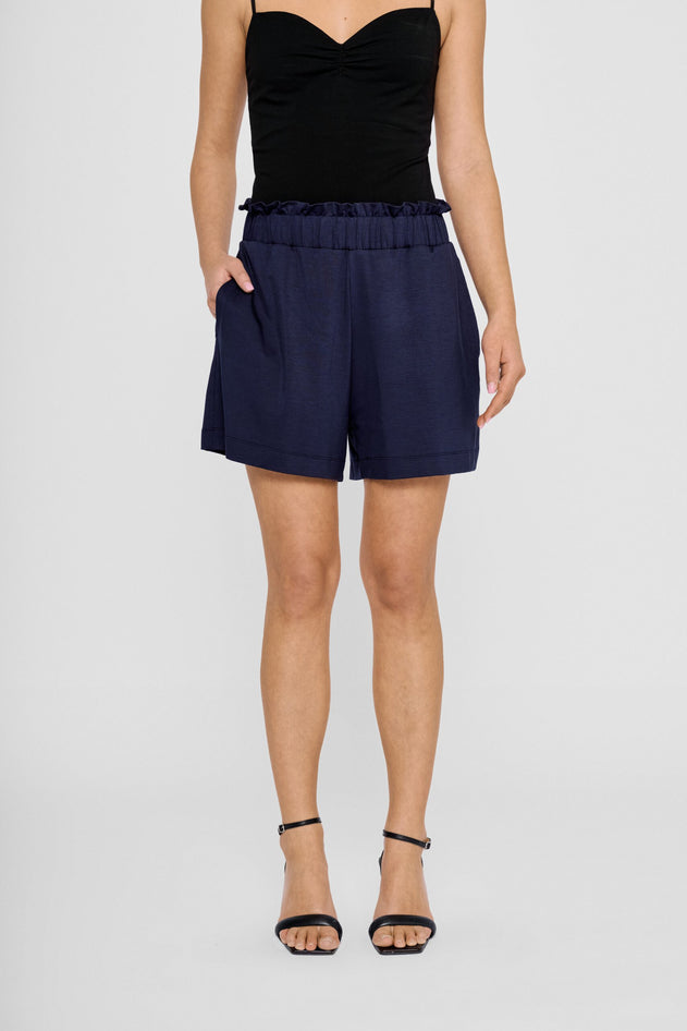 Nämä Tummansininen A-linjaiset minishortsit ovat rennot, niissä on pehmeä laskeutuvuus ja hienovaraisesti röyhelöity reuna vyötäröllä. Silkkinen ja joustava TENCEL™ lyocell-sekoitus on täydellinen mukavuuden säilyttämiseen, mutta silti tyylikkäänä pysymiseen kuumina kesäpäivinä.