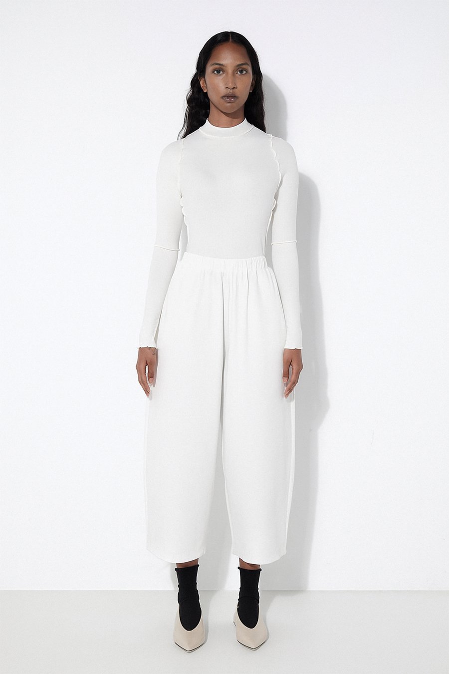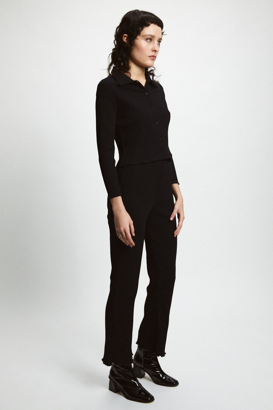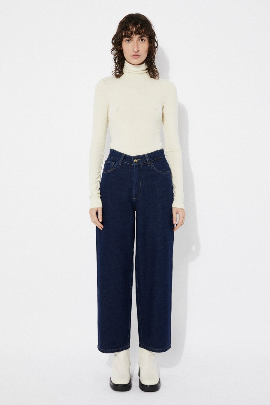 Clotilde-paita on valmistettu pehmeästä, Ribbi modalneuloksesta, mikä takaa poikkeuksellisen mukavuuden ja sileän tunteen ihoa vasten. Sen hienostunut muotoilu sisältää reunustetun kauluksen ja huolitellut saumat, hihat ja helman, jotka antavat sille erottuvan viimeistelyn. Valmistettu 95 % modalista ja 5 % elastaanista, tämä paita tarjoaa lempeää joustavuutta parantaen käyttömukavuutta. Eettisesti tuotettu Portugalissa, se yhdistää laadukkaat materiaalit vastuullisiin valmistuskäytäntöihin. Täydellinen niille, jotka etsivät sekä tyyliä että kestävyyttä.
