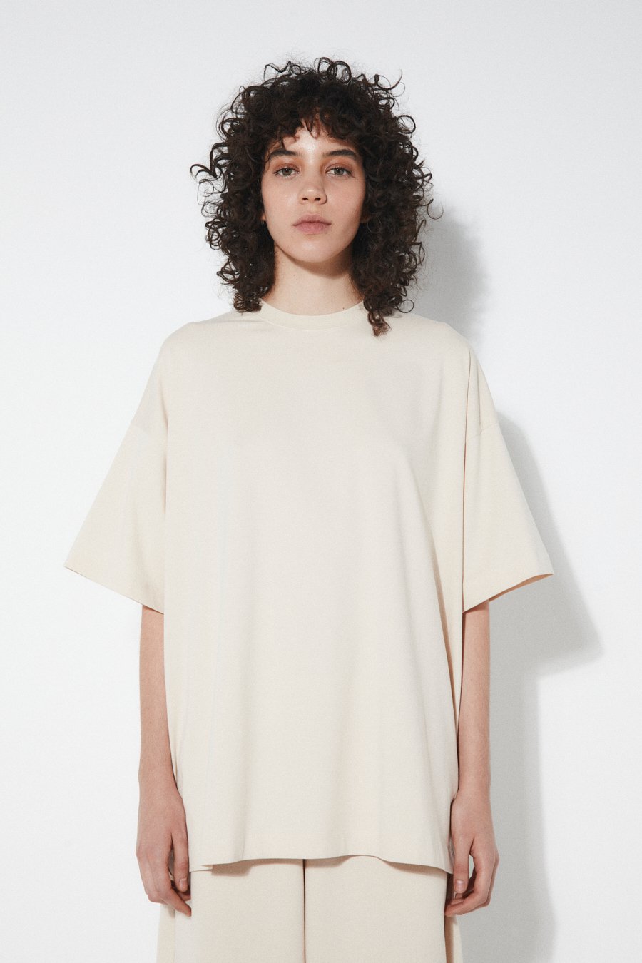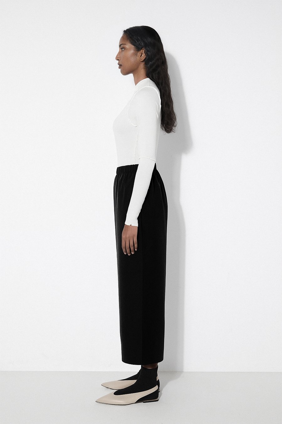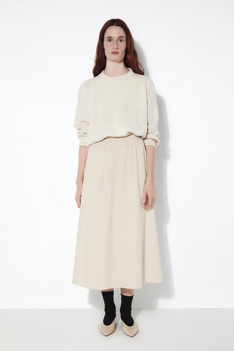 Clotilde-paita on valmistettu pehmeästä, Ribbi modalneuloksesta, mikä takaa poikkeuksellisen mukavuuden ja sileän tunteen ihoa vasten. Sen hienostunut muotoilu sisältää reunustetun kauluksen ja huolitellut saumat, hihat ja helman, jotka antavat sille erottuvan viimeistelyn. Valmistettu 95 % modalista ja 5 % elastaanista, tämä paita tarjoaa lempeää joustavuutta parantaen käyttömukavuutta. Eettisesti tuotettu Portugalissa, se yhdistää laadukkaat materiaalit vastuullisiin valmistuskäytäntöihin. Täydellinen niille, jotka etsivät sekä tyyliä että kestävyyttä.