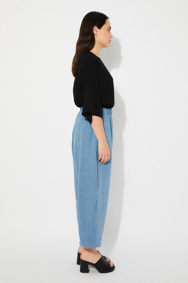 Esittelemme Wendy-housut, jotka on valmistettu BCI-puuvillasta ympäristöystävälliseen käyttöön. Leveällä haaremimallilla ja joustavalla korkealla vyötäröllä varustetut housut ovat täydelliset rentoihin tai aktiivisiin päiviin.
