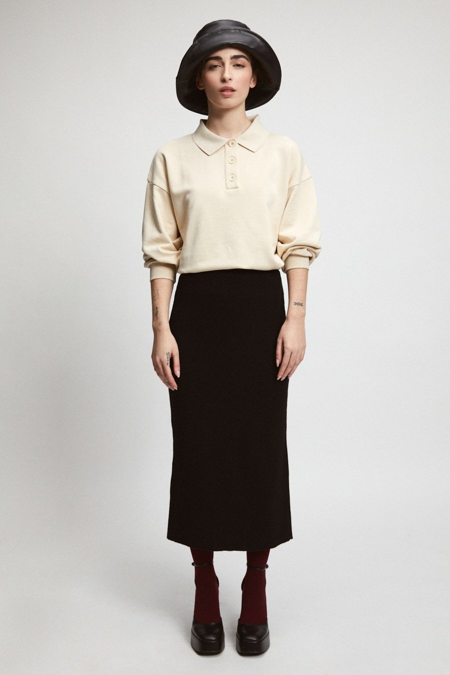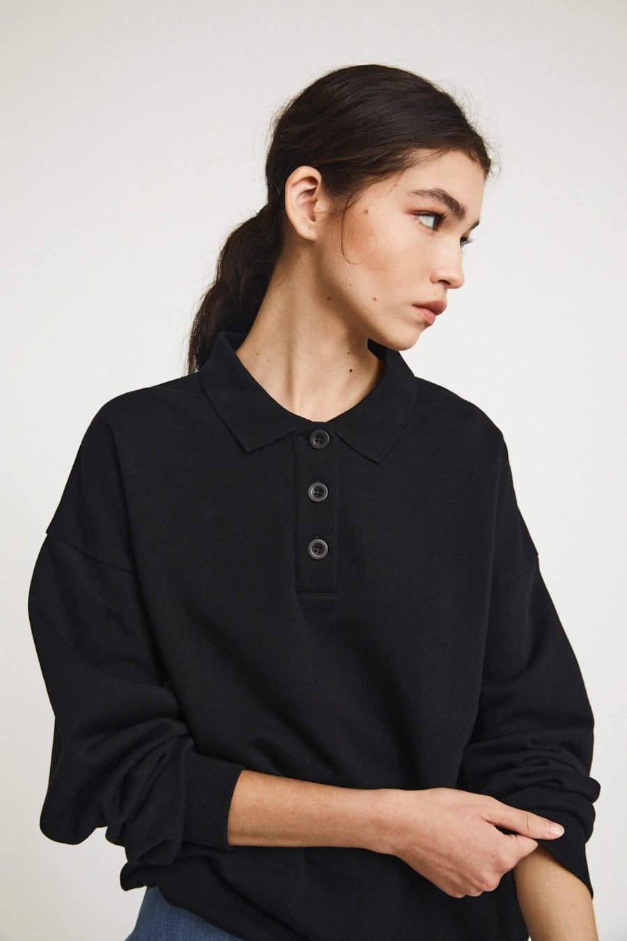 Momo on 175cm cm pitkä ja hänellä on yllään koko S.