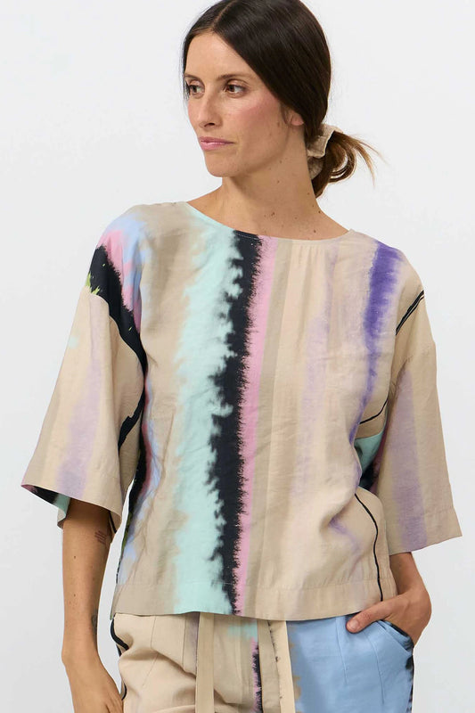 Oversized pusero, jossa on pyöreä pääntie ja 3/4-hihat. Selkäpuolen sulkeminen vegaanisilla corozo-pähkinänapeilla. Rakennettu mukavuuden ympärille, ajattelematta sitä liikaa. Helppo vaihtoehto, jota käytät luultavasti enemmän kuin suunniteltu.