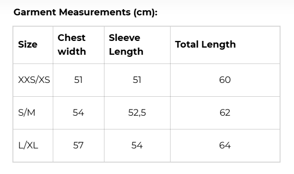 GUAJA. - Koko-opas - Vartalon mitat