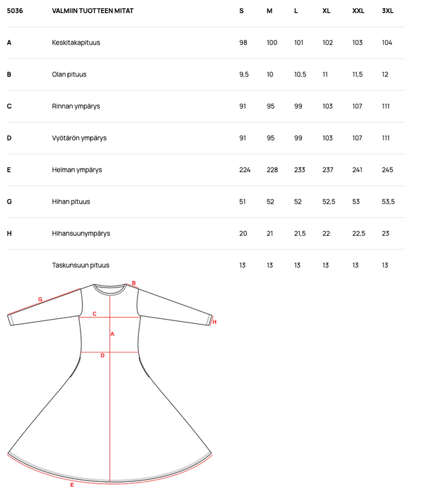 Nettiostoksilla kannattaa turvautua mittanauhan tai verkkokaupan kokotyökalun apuun. Tarkista vaatemerkin kehon mittojen mukainen kokotaulukko ja vaatteen mitat, jos ne ovat saatavilla. Ole tarvittaessa yhteydessä asiakaspalveluumme tarkempien mittojen saamiseksi.