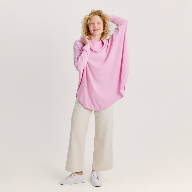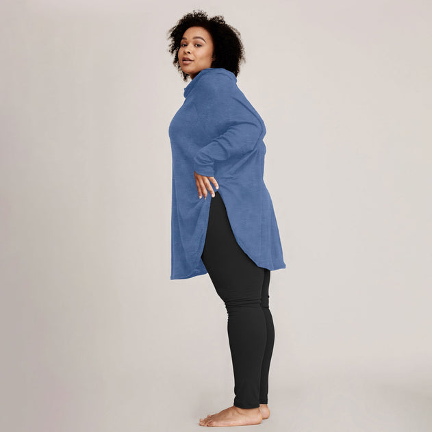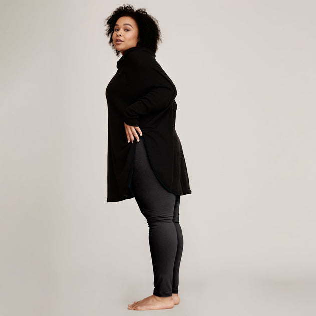 Korkeakauluksinen tunika jokapäiväiseen käyttöön. Tämä neulottu tunika sisältää korkean sivuhalkion, kapeat raglan-hihat ja kauluksen. Kaulus laskeutuu kauniisti kaulan ja hartioiden ympärille.