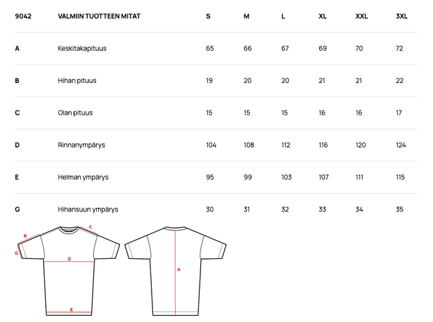 • Malli on 183 cm pitkä ja hänellä on päällään koko M.