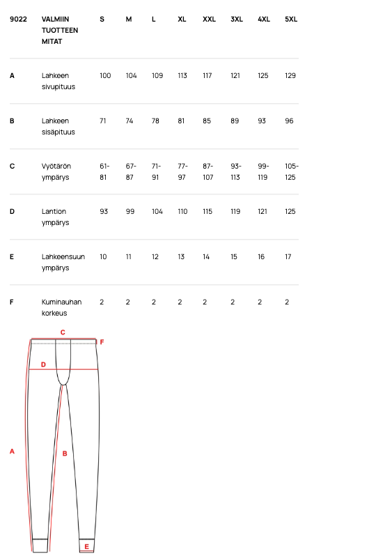 Eri vaatemerkkien mitoitus voi vaihdella keskenään. Yhden merkin koko M voi olla toisen merkin S. Useimmilla IVALO.COMissa myytävillä brändeille on oma kokotaulukko, jonka löydät tuotesivulta. Vertaa omia mittojasi merkin mittataulukkoon.