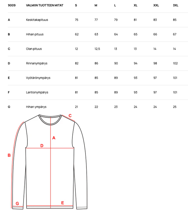 Eri vaatemerkkien mitoitus voi vaihdella keskenään. Yhden merkin koko M voi olla toisen merkin S. Useimmilla IVALO.COMissa myytävillä brändeille on oma kokotaulukko, jonka löydät tuotesivulta. Vertaa omia mittojasi merkin mittataulukkoon.
