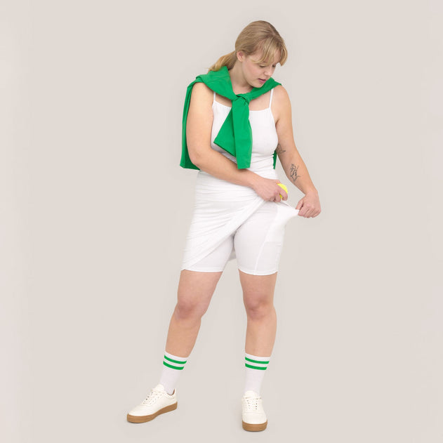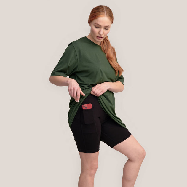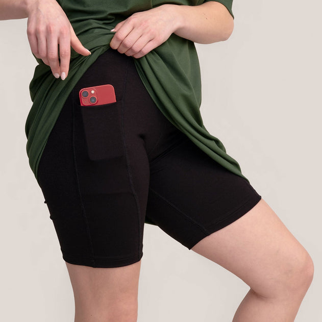 Astu rohkeasti uuteen seikkailuun taskullisten alushousujen kanssa! Käytä niitä ison t-paidan ja lenkkareiden kanssa tai kesämekon alla. Reiden korkeudelle ulottuvien legginsien molemmilla puolilla olevat tilavat taskut tarjoavat kätevän säilytyspaikan puhelimelle, avaimille ja jopa vesipullolle. Keski-reiden pituus, tiukka istuvuus ja purkautumattomat saumat tekevät näistä taskuhousuista täydellisen mukavat käyttää.