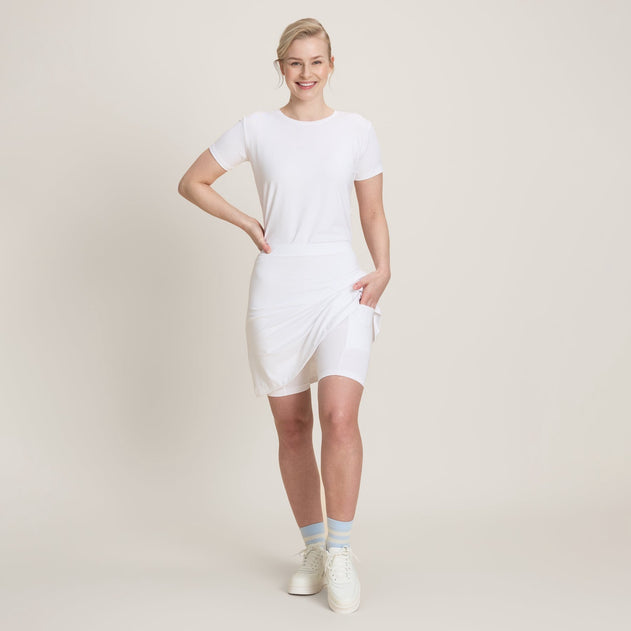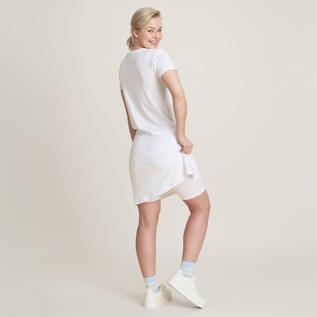 Shortseissa on käytännölliset sivutaskut, joihin voi säilyttää välttämättömiä tavaroita, kuten avaimia, puhelimen tai energiapatukan. Hengittävästä Materiaalit valmistettu hame tuntuu pehmeältä ihoa vasten ja siirtää tehokkaasti kosteutta pois.