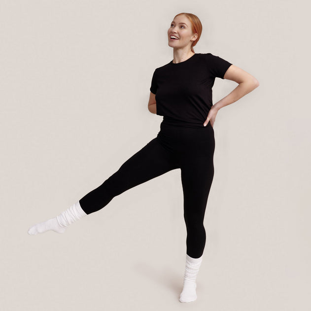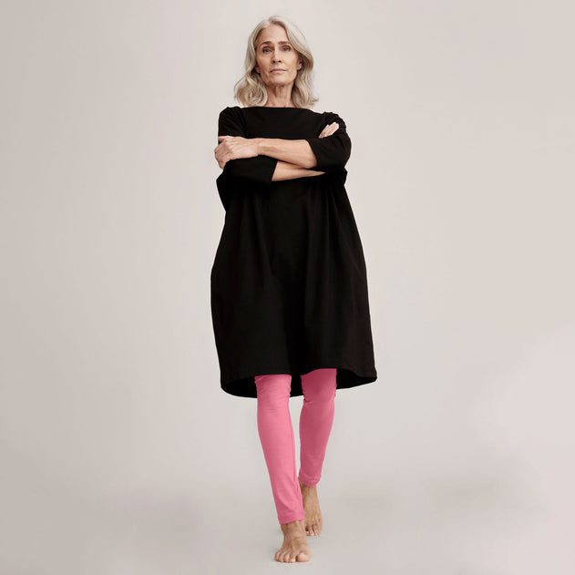 Bambulegginsit on valmistettu pehmeästä ja mukavasta bambukankaasta. Käytä niitä tunikoiden ja mekkojen kanssa tai lämpökerrastona. Muotoon istuva leikkaus ja joustava vyötärö takaavat erinomaisen mukavuuden. Leveämmän 3 cm:n joustovyötärön ansiosta legginssit ovat tiiviit ja mukavat käyttää.