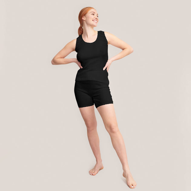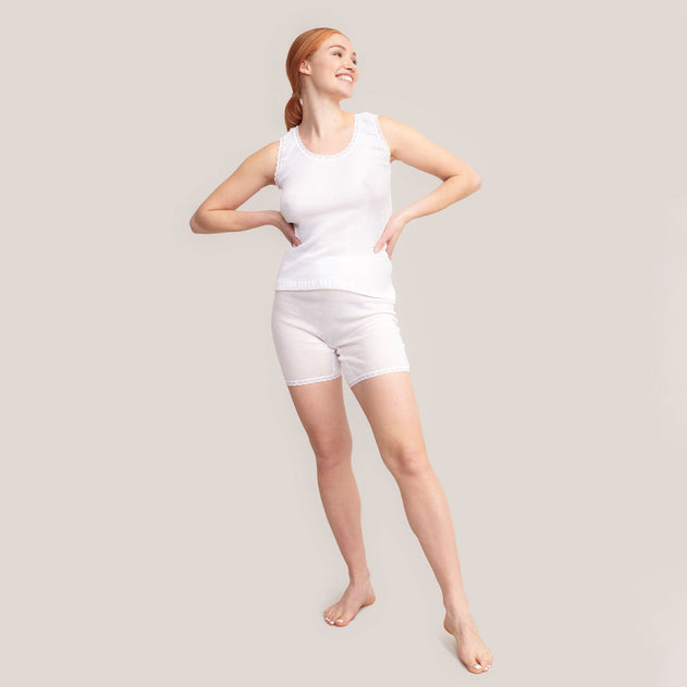 Hihaton paita on ohut, joustava yläosa, joka on valmistettu puuvillajerseykankaasta. Siinä on kaunis kapea pitsireunus pääntiessä ja kädenteissä.
