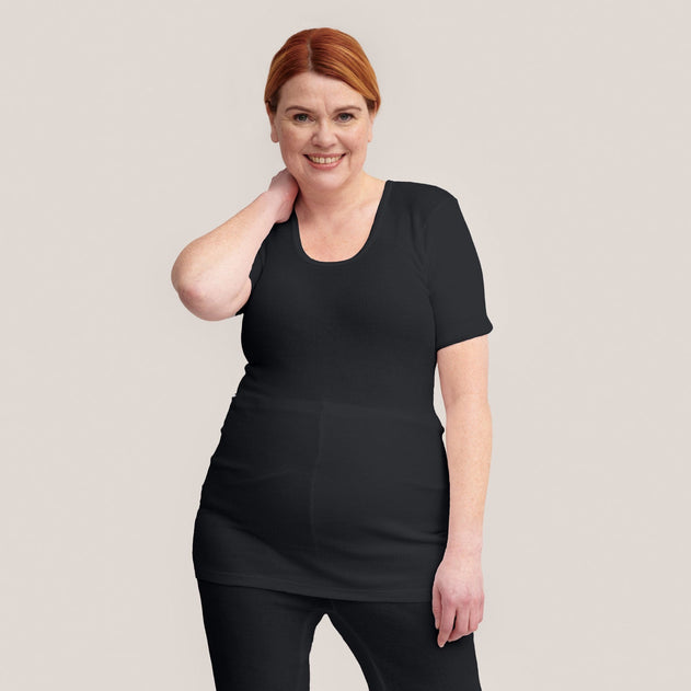 Lyhythihainen paita on klassinen tuote Tam Silk:lta. Valmistettu korkealaatuisesta puuvillatrikoosta, joka on joustava ja kevyt. Paidassa on pyöreä pääntie ja se on istuva aluspaita. Jos haluat väljemmän istuvuuden, valitse yksi koko suurempi.