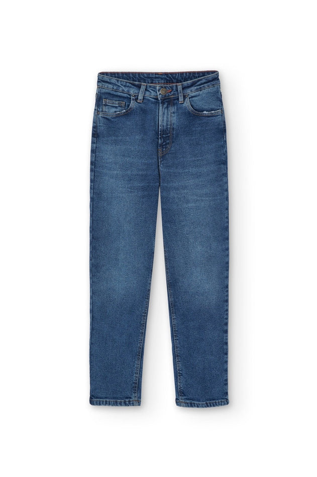 Nämä Gueda Momfit Denim -housut pestyssä Sininen tarjoavat ajattoman, korkeavyötäröisen, suoran leikkauksen ja momfit-tyylin, samalla kun ne tarjoavat lisäetuja, koska ne on valmistettu luomupuuvillasta. Nämä housut ovat täydellisiä niille, jotka etsivät kestävää ja muodikkaan lisäyksen vaatekaappiinsa.