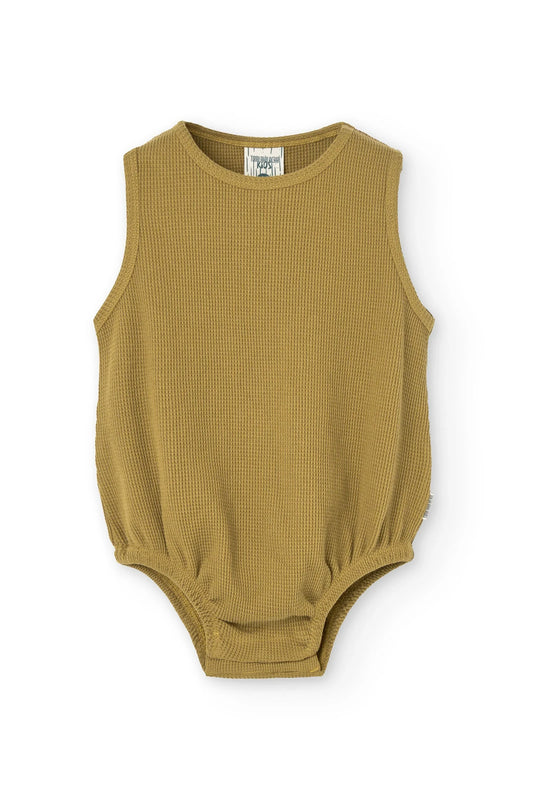 Täydellinen romper kesäksi. Tilava ja olkapäällä nikkelittömät nepparit. Valmistettu korkealaatuisesta GOTS-luomupuuvilla waffle-kankaasta.