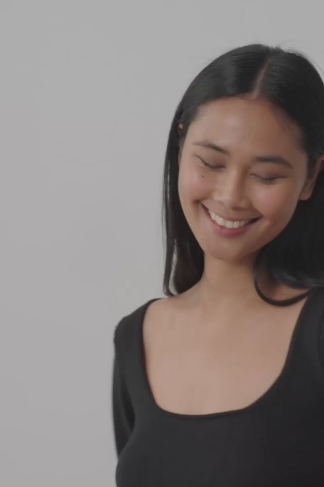 Tässä neulotussa yläosassa on kaunis leveä pääntie, 3/4-pituiset pussihihat ja se on valmistettu Tencel lyocellista.