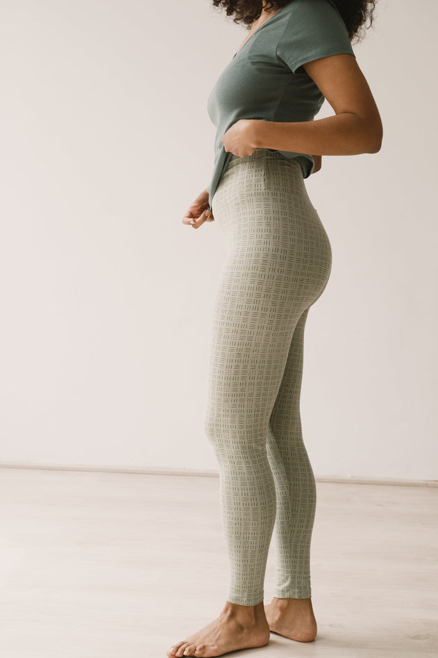 Luomupuuvillaiset leggingsit, joissa on kaksinkertainen vyötärönauha lisätukea ja mukavaa istuvuutta varten. Täydelliset matkustamiseen, työhön, meditaatioon ja kuntosaliharjoituksiin.