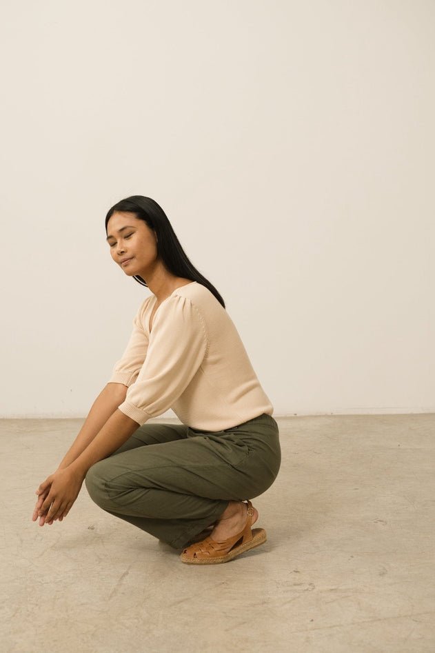 Gina Long Sleeved Crossover Top Sidereal Rain Beige