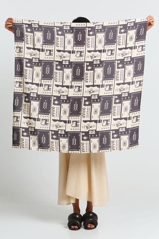 Iso neliönmuotoinen huivi, joka on valmistettu kevyestä orgaanisesta viskoosista ja jossa on etninen kuvio.