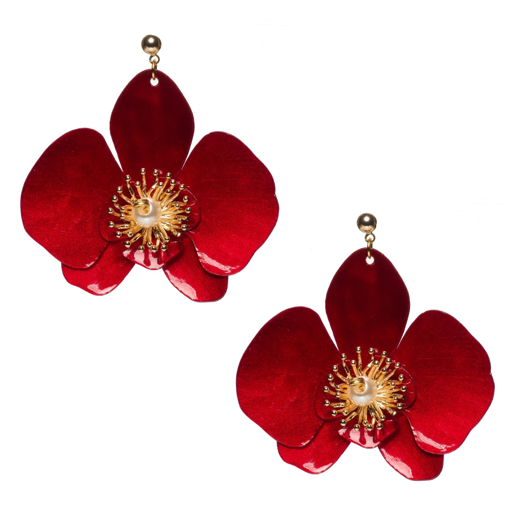 Butterfly Orchid Pearl Earrings Red