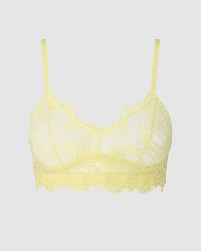 Täysin pitsinen balconette-rintaliivit, joissa on aaltoilevat reunat. Valmistettu Understatement:n tunnusomaisesta Feather Lace -pitsistä, joka sisältää 80 % kierrätettyjä kuituja.