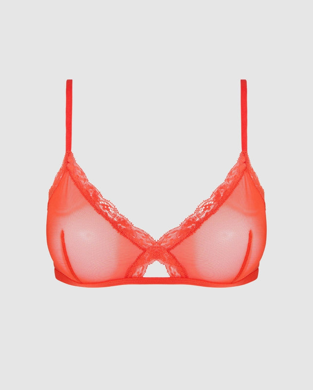 Mesh Cut-Out Triangle Bralette Fiery Red