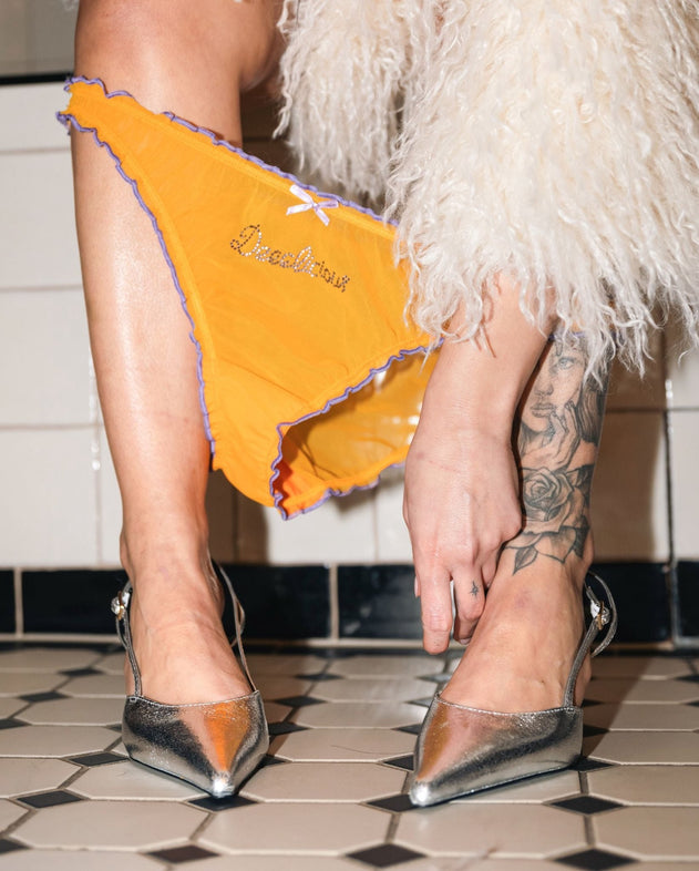 Mesh Ruffle Bikini Briefs Mustard / Electric Lilac