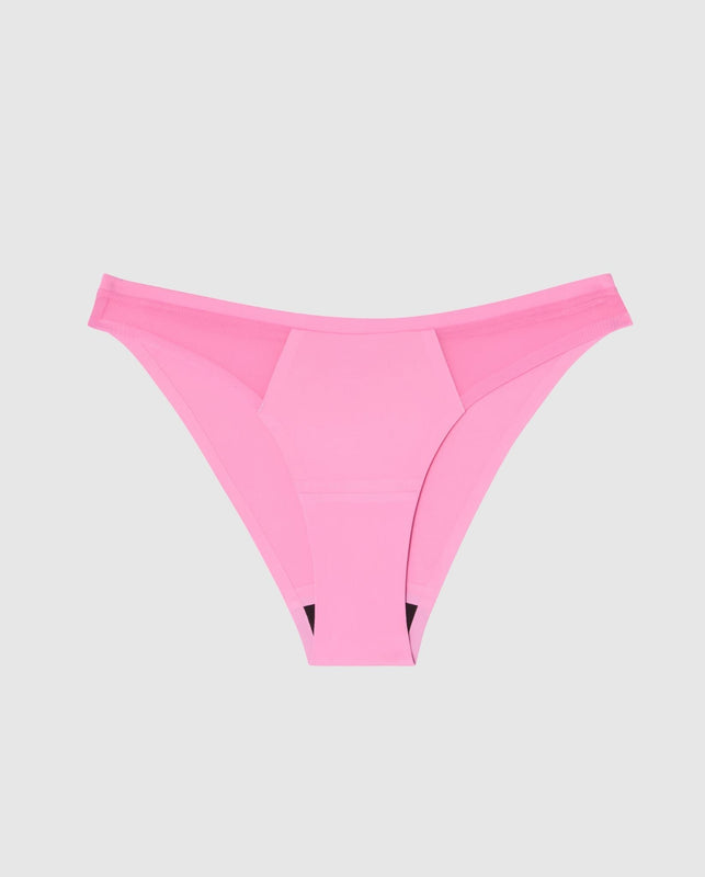 Keskikorkeat bikinit, jotka on valmistettu kierrätetystä mikrokuidusta ja meshistä. Pehmeät mikrokuituiset etu- ja takapaneelit tarjoavat sileän tunteen. Taktilliset mesh-sivupaneelit hengittävyyttä varten. Ohut, mikrokuidulla päällystetty vyötärönauha maksimaalista mukavuutta varten. 4-kerroksinen haaraosa, joka imee keskimäärin jopa 3 tamponin verran kuukautisnestettä.