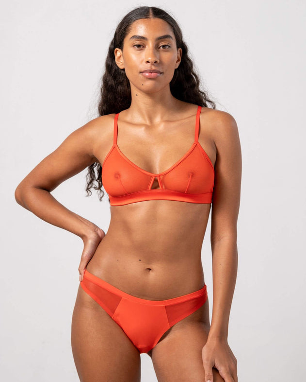 Mesh Bikini Briefs Pale Pink/Deep Red