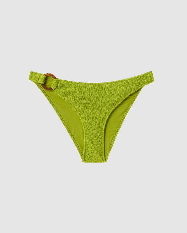 Nämä Ring Bikini Briefsit on valmistettu teksturoidusta uima-asukankaasta, jossa on tyylikäs rypytetty efekti, mikä antaa niille ainutlaatuisen ja muodikkaan ilmeen. Keskikorkea muotoilu sisältää imartelevan kaarevan vyötärön, kun taas korkealle leikattu jalka tarjoaa rohkean, itsevarman siluetin.