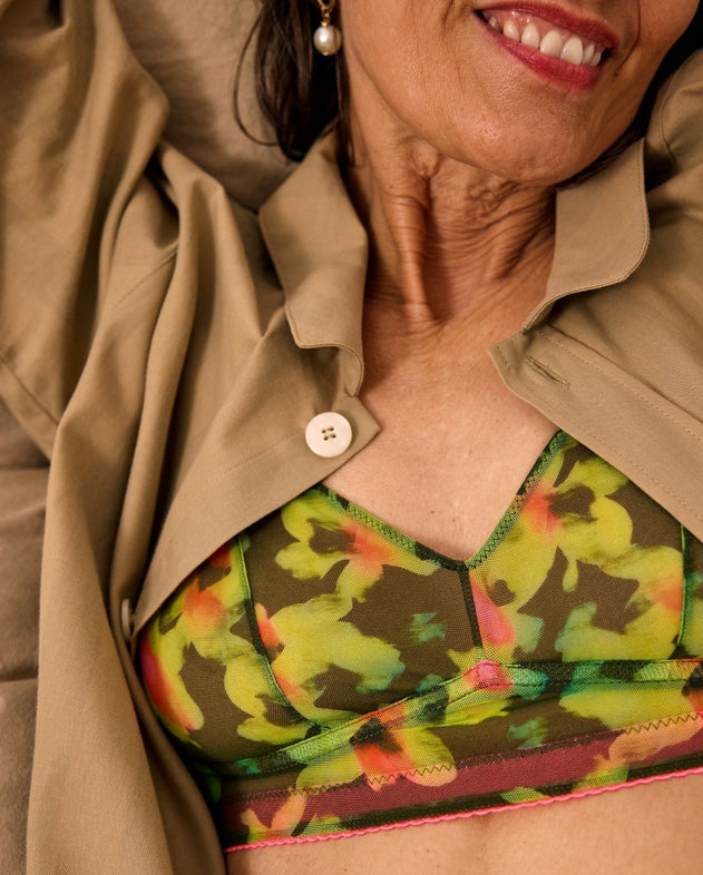 Mesh Balconette Olive Abstract Floral