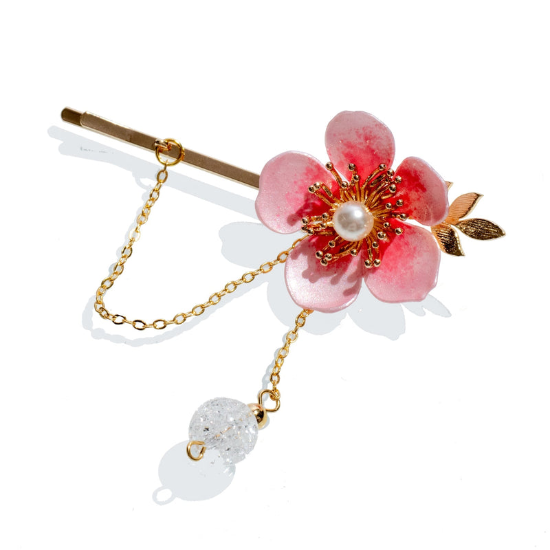 Tämä monimutkainen kolmiulotteinen hiusneula erottuu joukosta ja osoittaa arvostuksesi käsityölle ja luonnon maailmalle. Hieno vaaleanpunainen kirsikankukka on käsintehty kierrätetystä muovista.