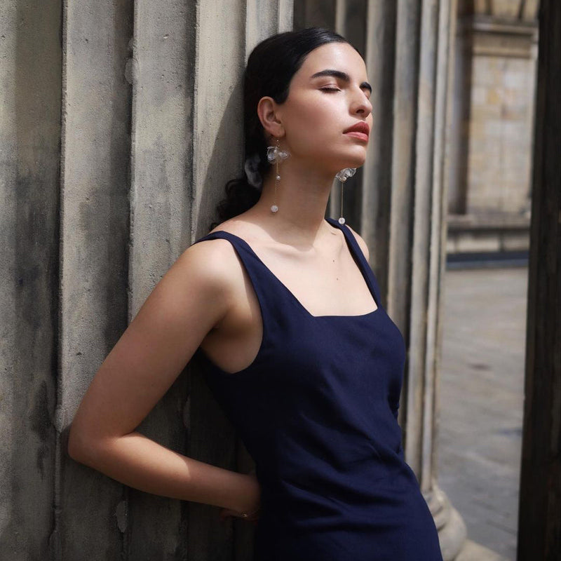 Inspiroituneena yhdestä baletin sulavimmista taidemuodoista, nämä kolmoiskukkaiset korvakorut jäljittelevät balettitanssijan sulavaa etenemistä monissa asennoissaan. Kolme kirkasta terälehtikukkaa kiinnittää kaksi ketjua eri pituuksilla, jotta valkoiset helmiäiset pisarat heiluvat leikkisästi toisiinsa, kun keinut, nyökkäät ja kallistat päätäsi pehmeässä naurussa.